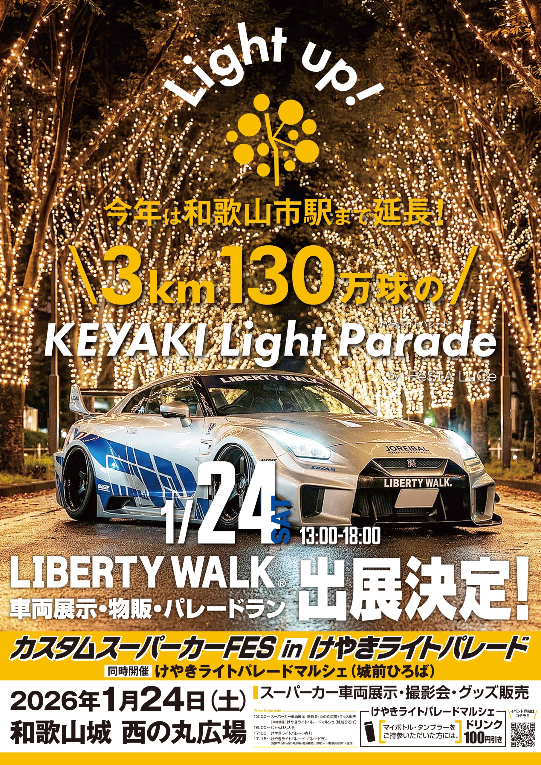 カスタムスーパーカー約30台が集結、光の中のパレードランも/和歌山市