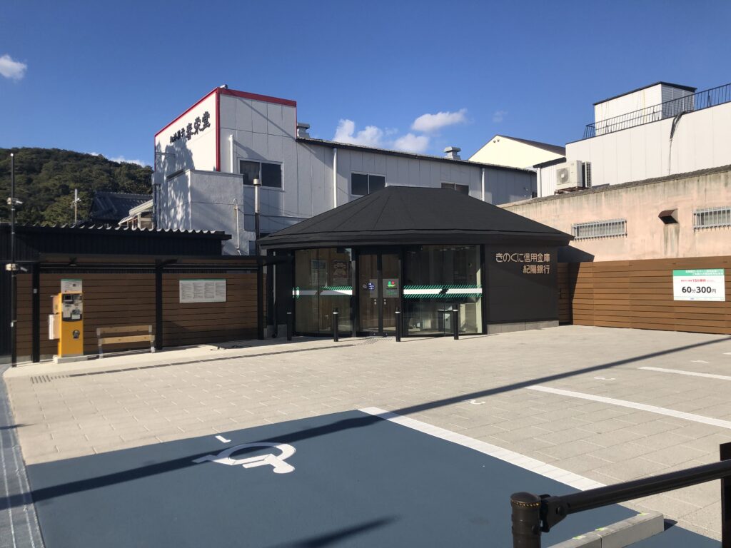 きのくに信用金庫では、旧和歌浦支店の老朽化に伴い、建て替え工事を行っていました。新しい和歌浦出張所は平屋建てで、これまで敷地内になかった駐車場があわせて5台分、設けられました。そして、きのくに信金のATM1台に加え、明光通り沿いの店舗向かいにあった紀陽銀行和歌浦サービスコーナーからATM1台が移設されました。