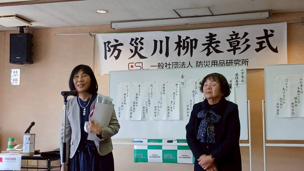 小学生の部で入賞した子どもたちは挨拶で「防災意識が高まった」とか「防災を考えるきっかけとなった」などと話して受賞を喜んでいました。防災用品研究所では今後も川柳を通じて防災への啓発を行いたい考えです。