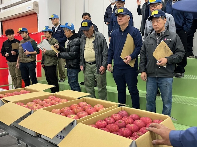 そして、しめ縄でつくられた船に縁起物として、ニンジンやリンゴなどの青果を乗せ、その前で仲買人(なかがいにん)が初セリを行い、全員で、三本締めで祝いました。このあと、市場内では、果物や野菜のセリが、一斉にスタートしました。