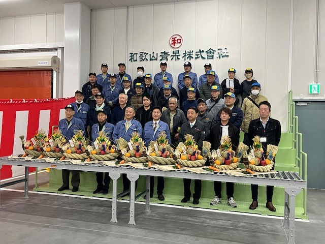 このうち、和歌山青果のセリ場では、セリが始まる前に、セレモニーが行われ、岸泰宏(きし・やすひろ)社長が、新しい市場での初セリを祝うとともに、商売繁盛や市場関係者の健康などを願って、あいさつしました。