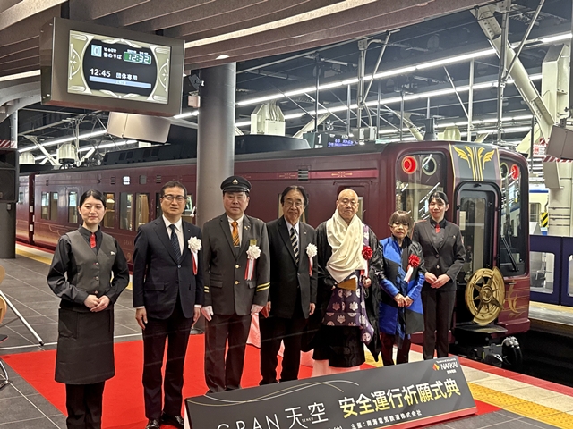 南海電鉄の梶谷社長は「GRAN天空は、なんばから高野山、その先へと、人と地域、未来をつなぐ存在でありたい。きょうの祈願を胸に、社員一同、安全安心な運行と心に残る旅の提供に全力を尽くす」とあいさつしました。
