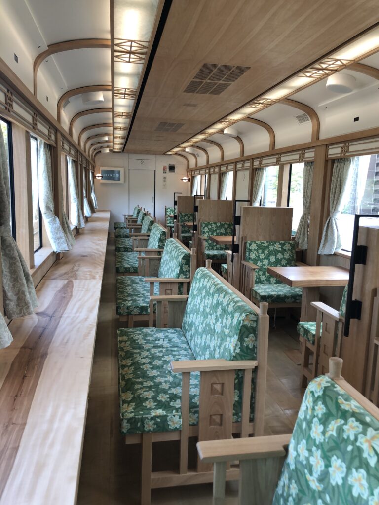 4両編成の車内はすべて座席指定で、1号車は機能的な「リラックスシート」、2号車は車窓を楽しめる「ワイドビューシート」、3号車は自由に過ごせる「ロビーラウンジ」、そして4号車は最上級の「グランシート」で構成されています。