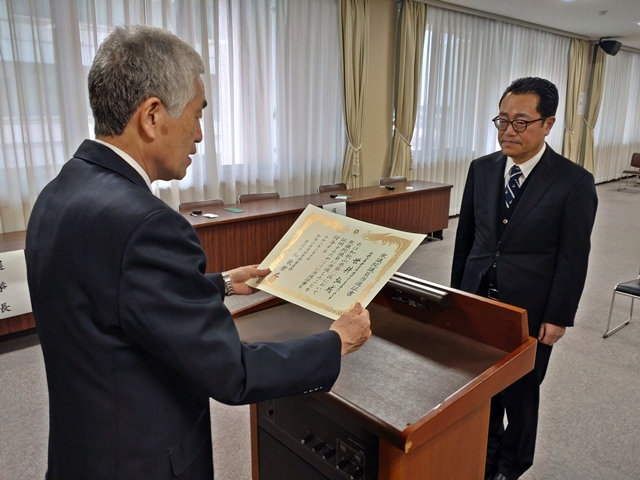 から当選証書を授与される山本大地氏(左)(2月10日・和歌山県庁北別館).jpg)