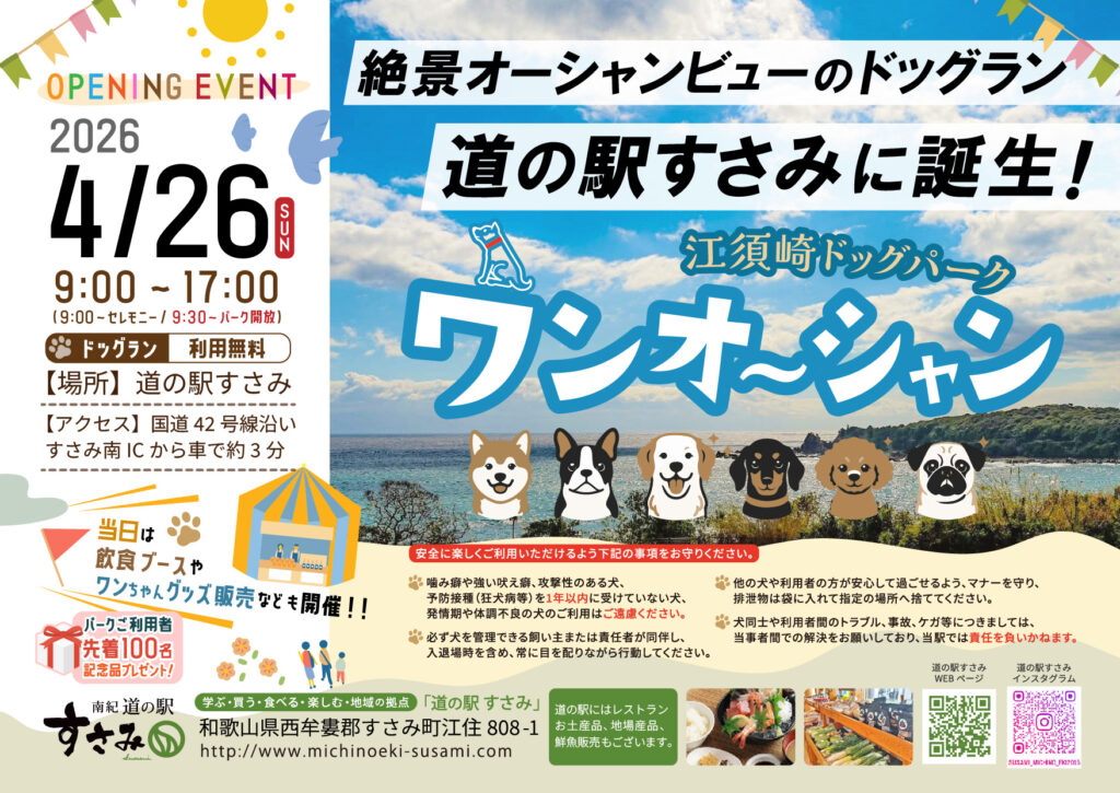 道の駅すさみを運営する株式会社信濃路(しなのじ)によりますと、オープンするのは「ワンオーシャン・江須崎(えすざき)ドッグパーク」で、「愛犬と、海風を感じながら走れるオーシャンビュードッグラン」とPRしています。